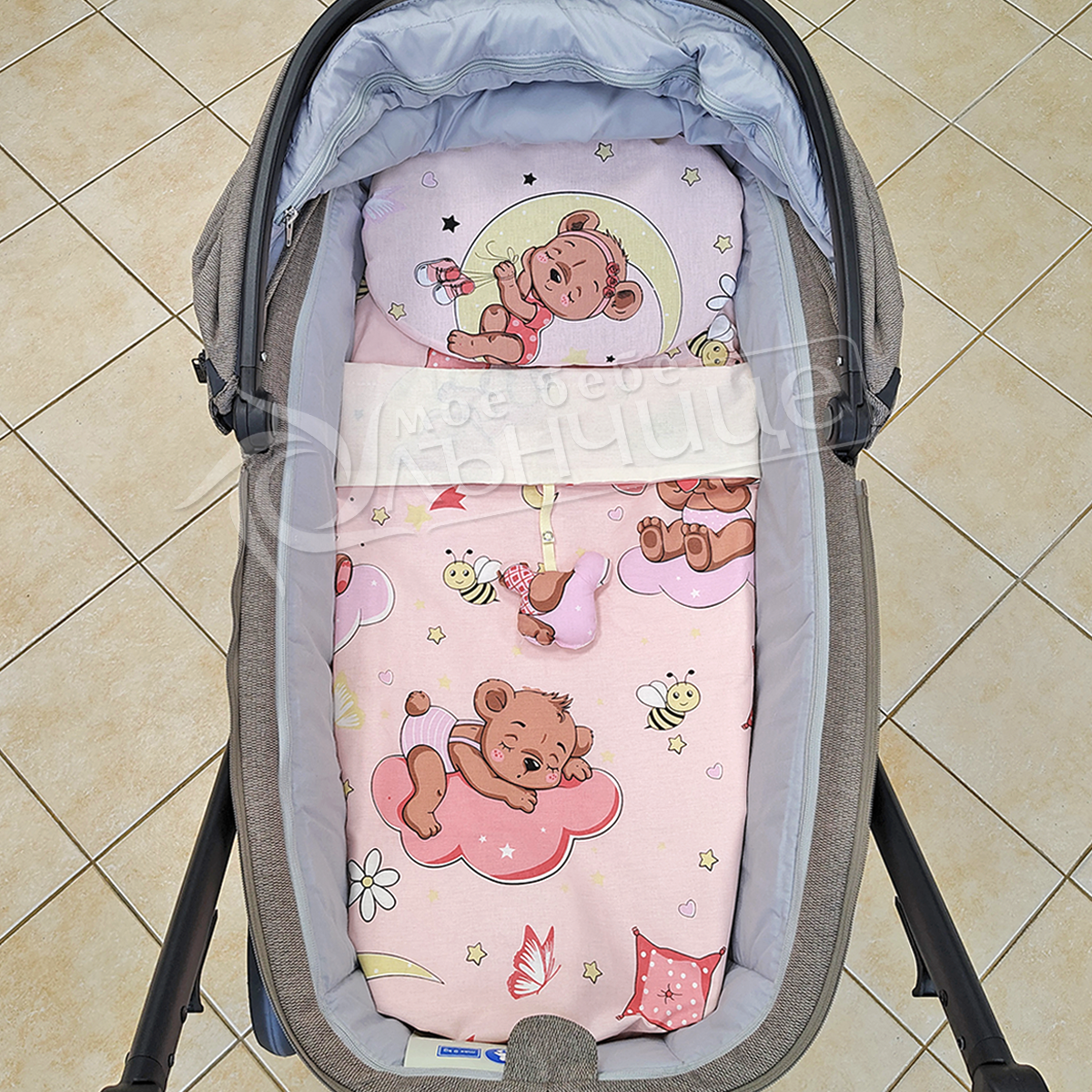 Двулицев летен комплект за количка - Sleepy Baby Pink