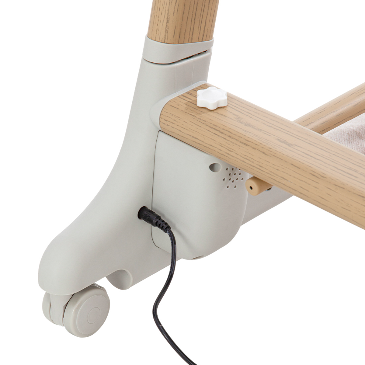 Вградената електронна система за люлеене е оборудвана със сензор за движение, който автоматично активира люлеенето при плач на бебето. Това осигурява спокойствие на детето и гарантира качествен сън. - Контролният панел със светещ дисплей предоставя лесен достъп до следните опции: 5 различни скорости на люлеене; таймери за 8, 15 и 30 минути; 12 мелодии създадени да успокояват бебето; възможност за свързване чрез Bluetooth със смартфон за възпроизвеждане на индивидуални мелодии.