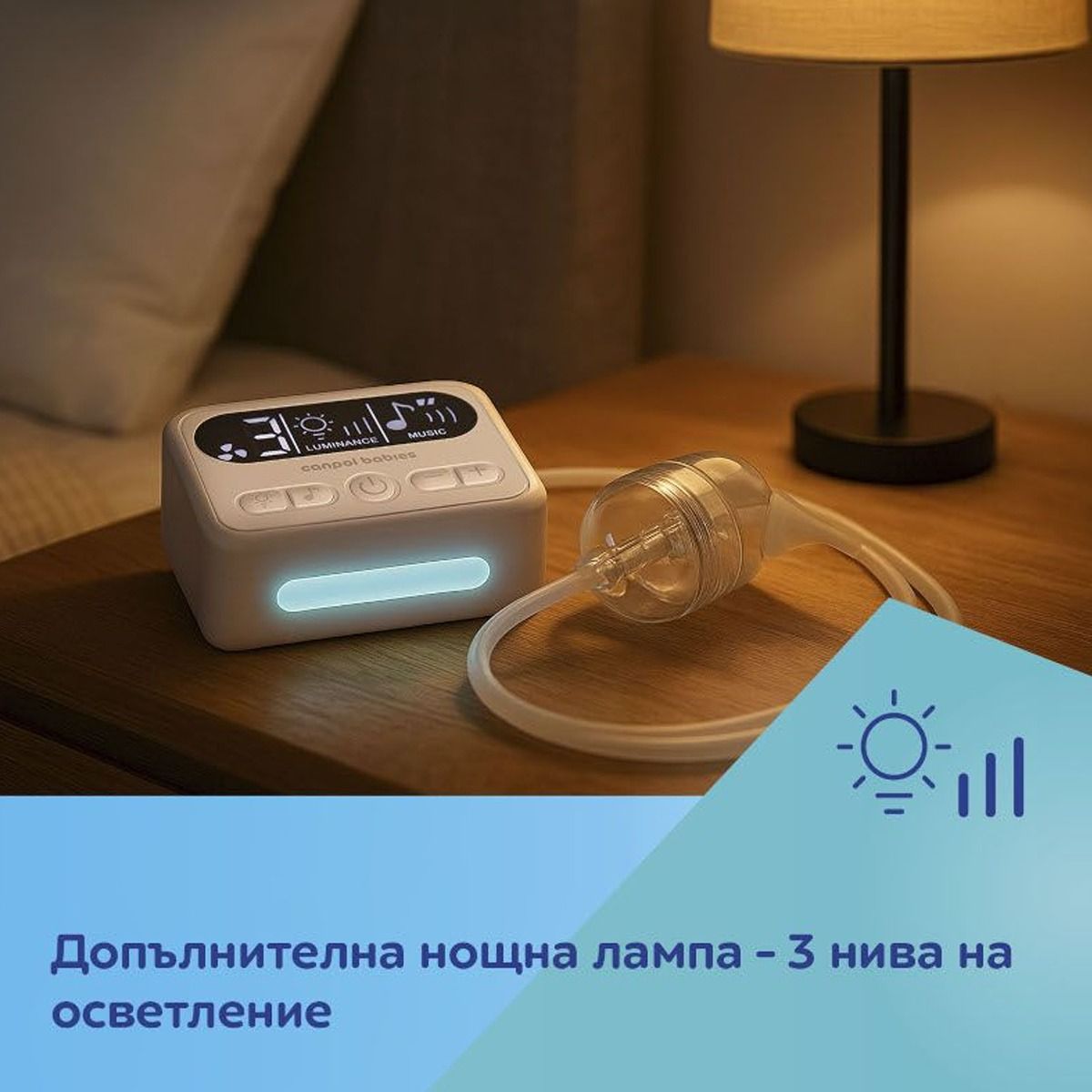 - Нежна нощна светлина с три нива на яркост за по-голям комфорт.