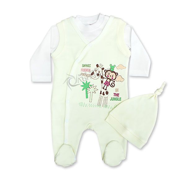 Гащеризон без ръкав с блузка и шапка-56см - 0 до 2м-Жълт