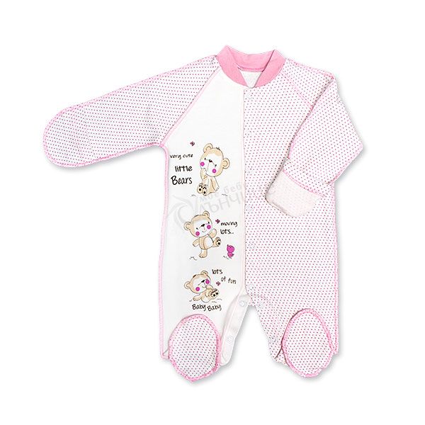 Гащеризон дълъг ръкав - Little Bear-56см - 0 до 2м-Розов