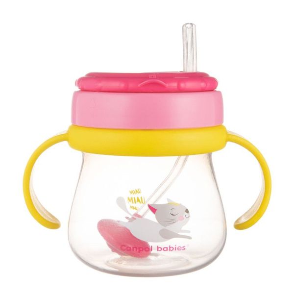 - Иновативна чаша със сламка, която позволява на детето да пие под всякакъв ъгъл.