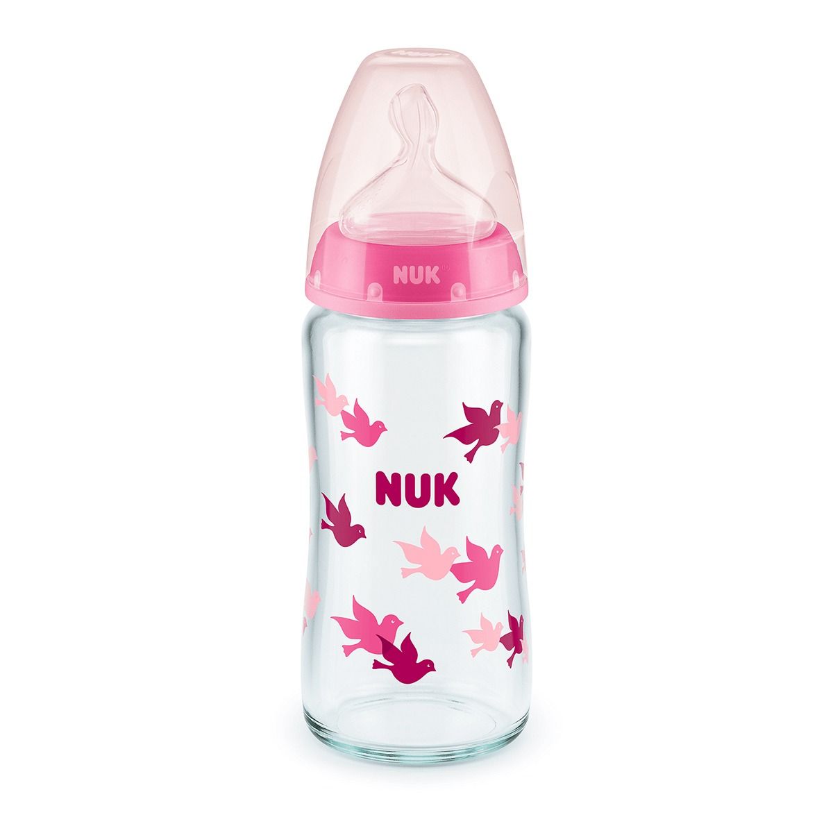 Бебешко стъклено шише със силиконов биберон First Choice 240 мл. Temperature Control 0-6 м. Pink - NUK