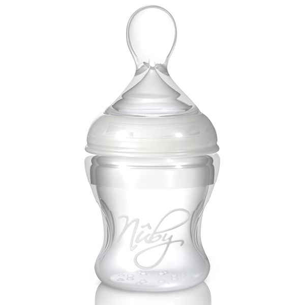 • Мекото шише с лъжичка от серията SoftFlex на Nuby е изработено от мек силикон и напълно безвредна пластмаса без бисфенол А.