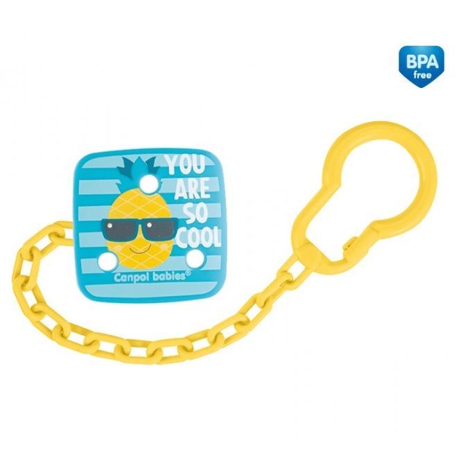 - Синджирът е снадбен с практичен клипс, който позволява стабилно прикрепване към дрехите на бебето.