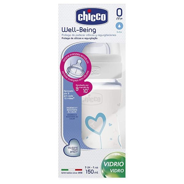 Стъклено шише за хранене против колики Well-Being 150мл 0м+ CHICCO
