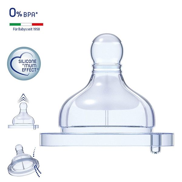 - Биберонът е изработен от физиологичен силикон с бавен поток и антиколикова и антирегургитационна система.