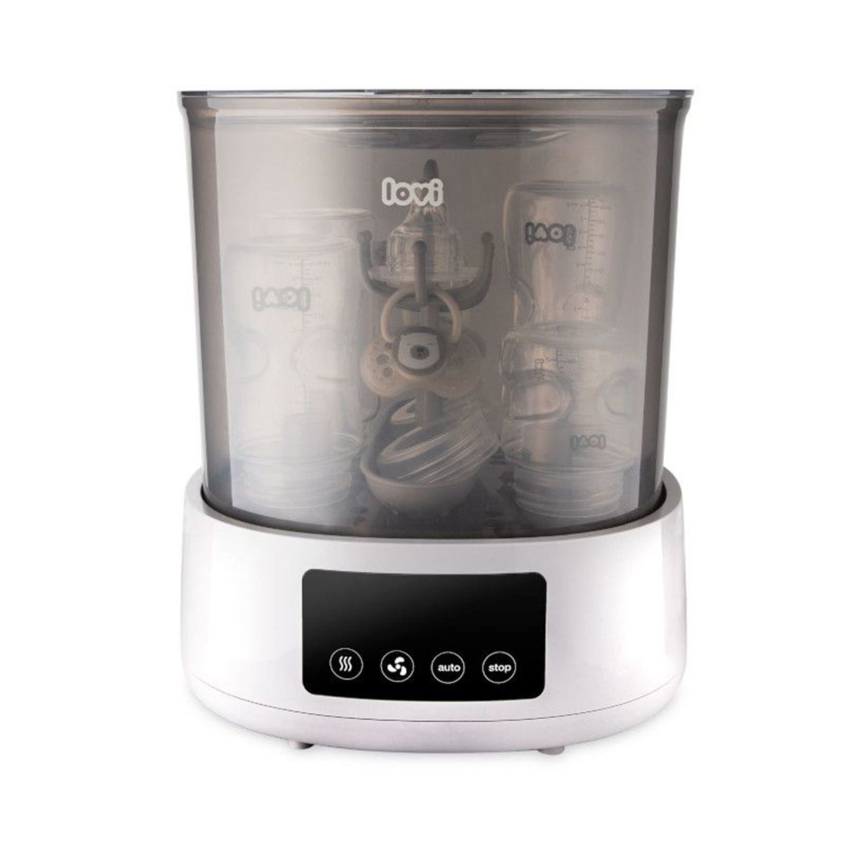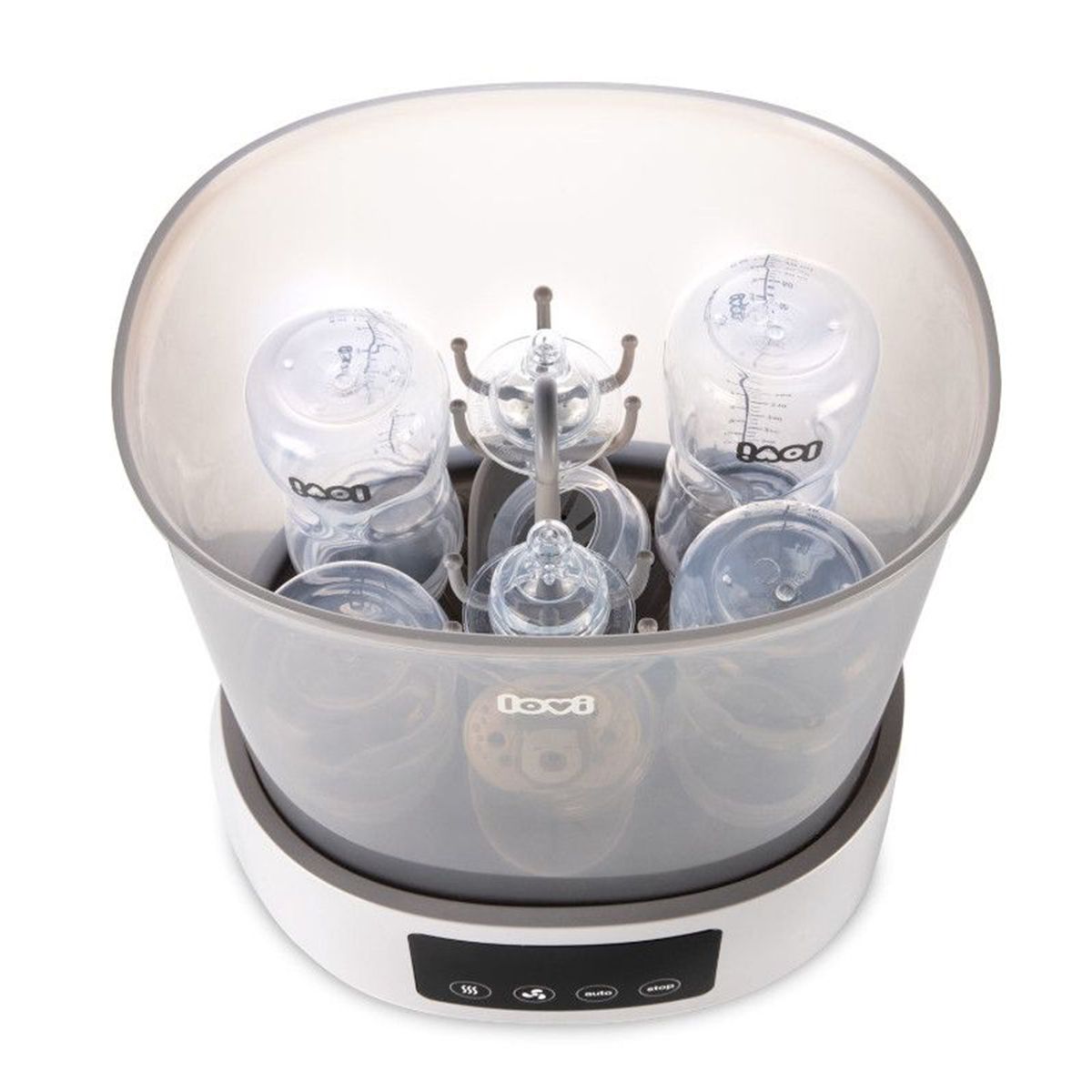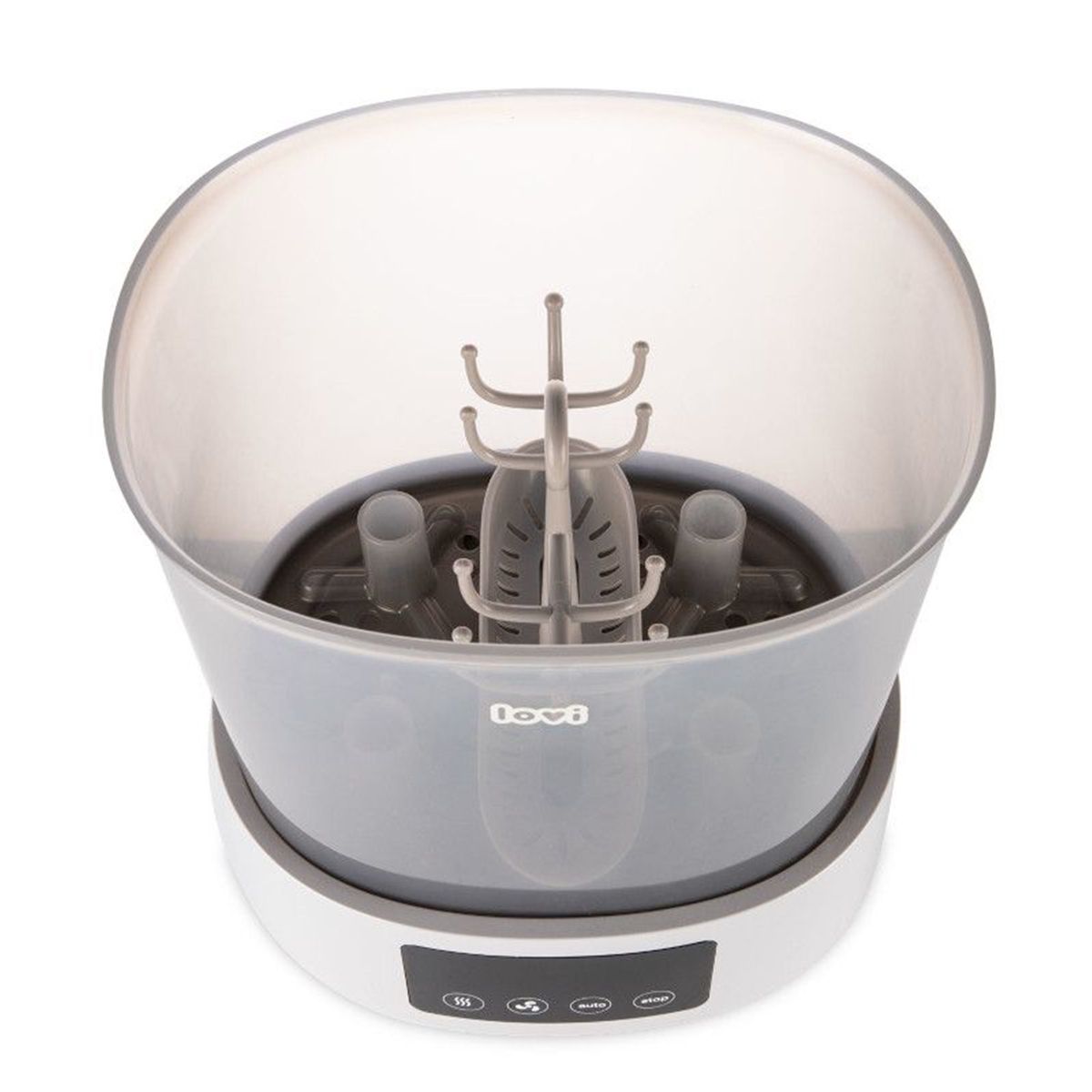 Иновативна комбинация от стерилизатор и сушилник, благодарение на която шишетата и залъгалките са бързо чисти, сухи и безопасни за бебето.