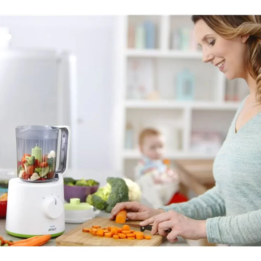 Комбинираният уред за готвене на пара и блендер АВЕНТ е идеален за направата на здравословна, домашно приготвена храна за бебета. Първо сгответе на пара плодове, зеленчуци, риба или месо. После просто обърнете каната с дъното нагоре, за да пасирате съдържанието, без да е необходимо да пресипвате храната.