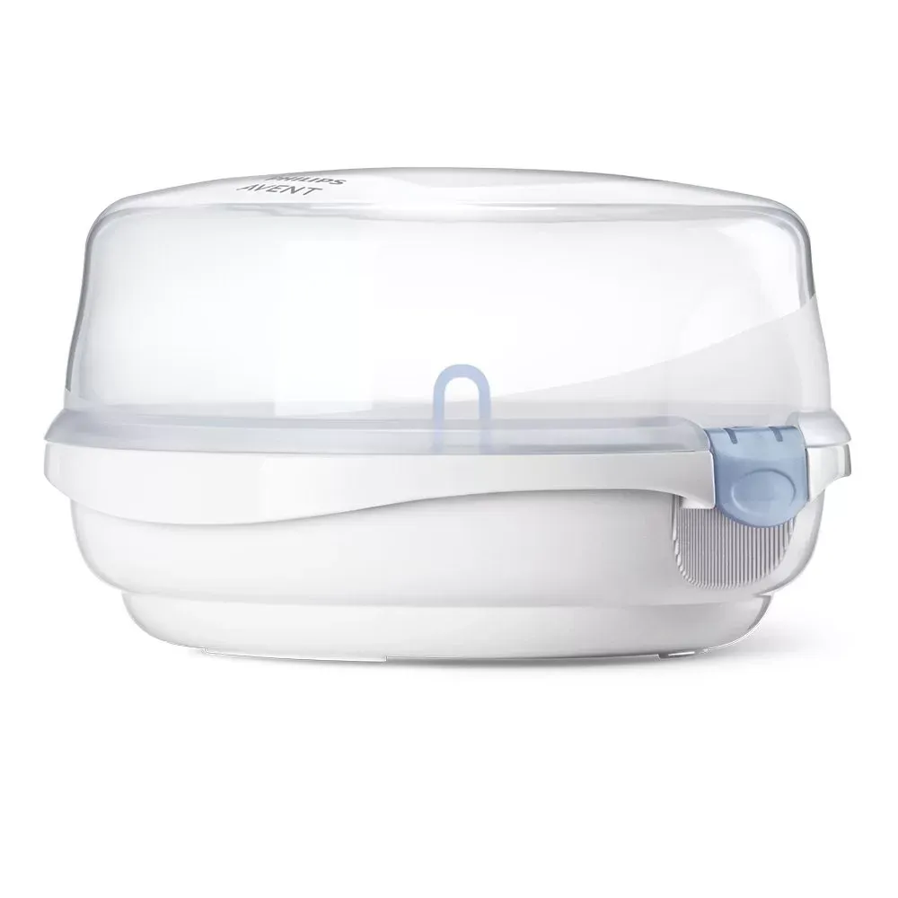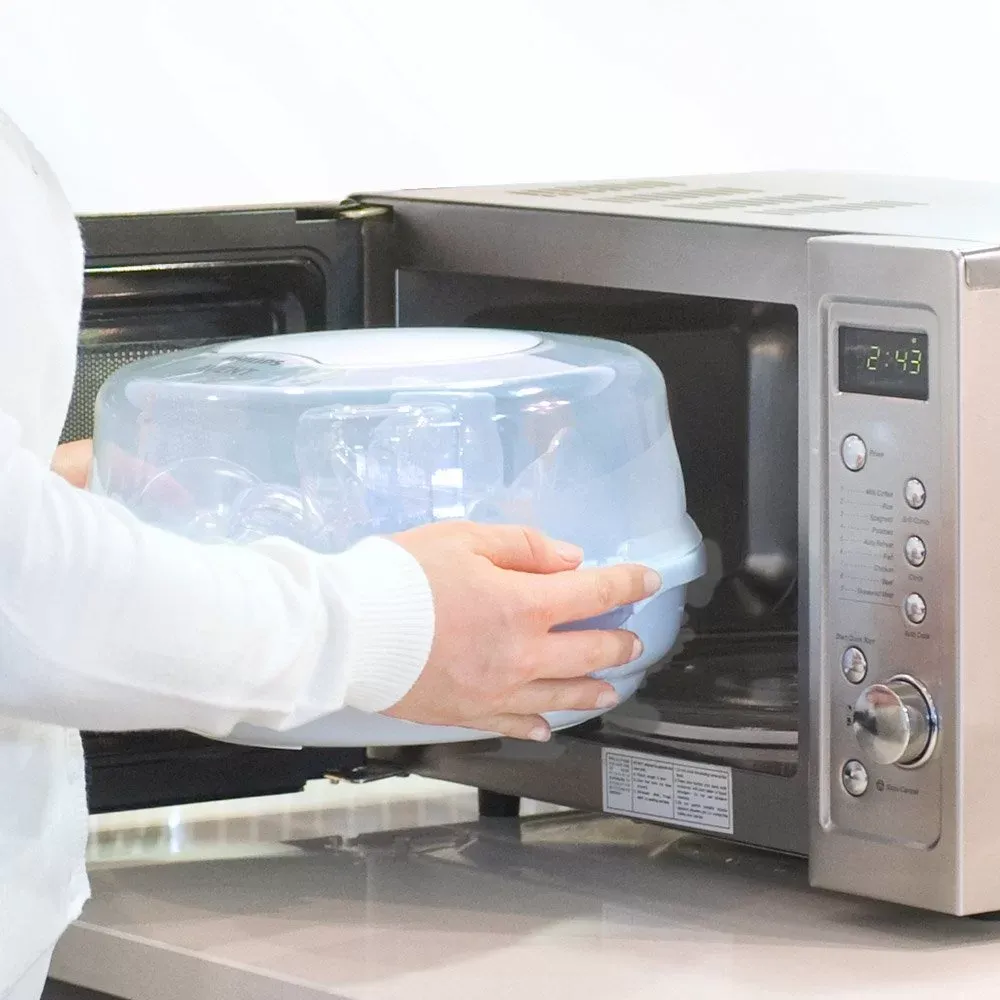 Стерилизаторът за микровълнова Philips Avent побира до 4 шишета за хранене Philips Avent 260 ml или 2 помпи за изцеждане и 2 шишета за хранене. Лекият и компактен дизайн го прави идеален за употреба извън дома като може да се използва с повечето микровълнови фурни на пазара. ВкСъдържанието остава стерилно до 24 часа, ако не отваряте капака.