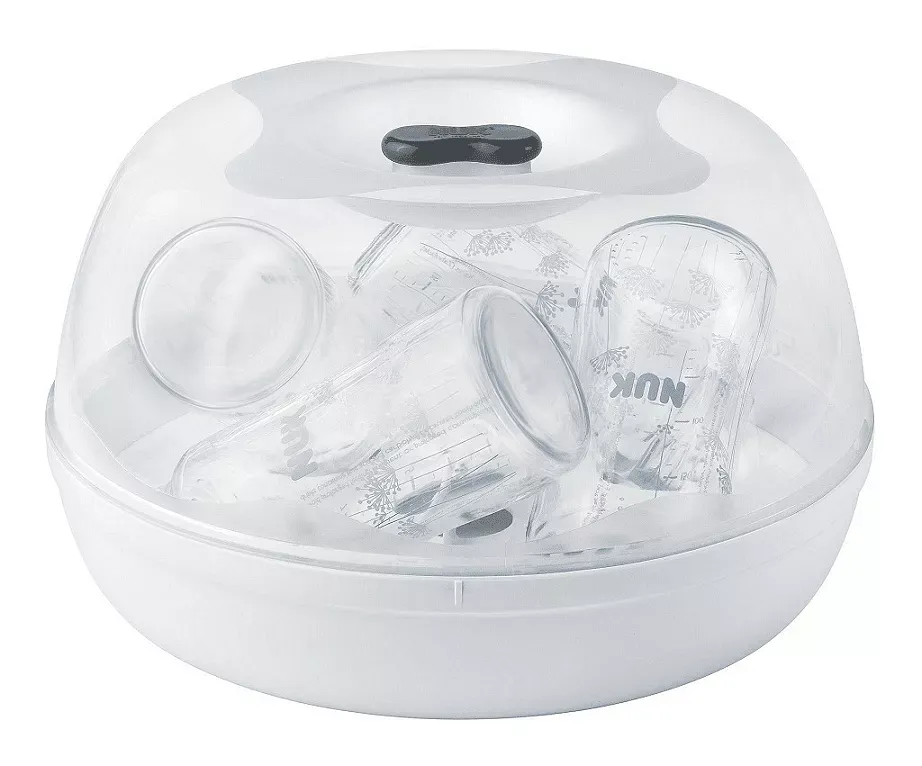 Стерилизаторът за микровълнова фурна NUK е компактно и изключително лесно за използване решение за всяко семейство. Той осигурява бърза и ефективна стерилизация, подходяща както за шишета, така и за аксесоарите на Вашето бебе. С този уред можете да стерилизирате до 4 шишета и аксесоари само за 4 минути.