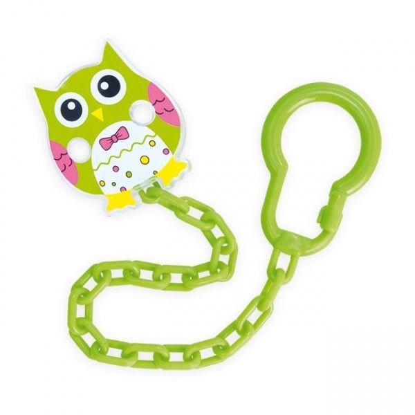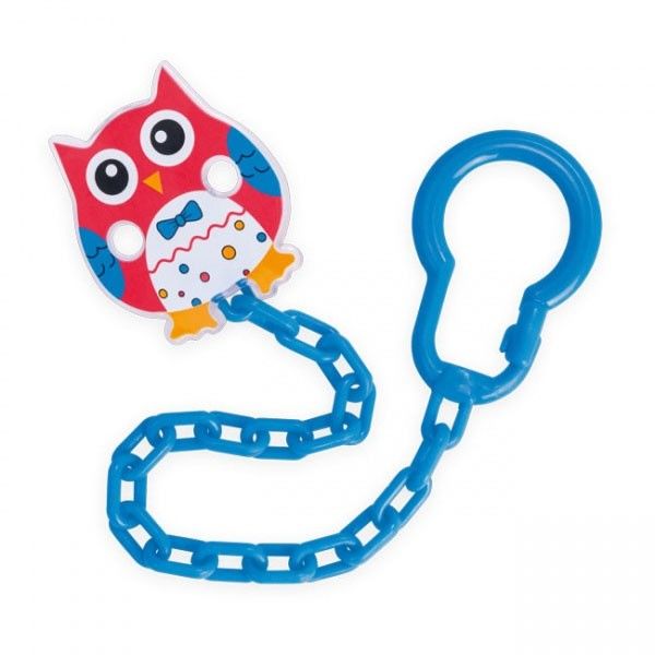 - Синджирът е снадбен с практичен клипс, който позволява стабилно прикрепване към дрехите на бебето.