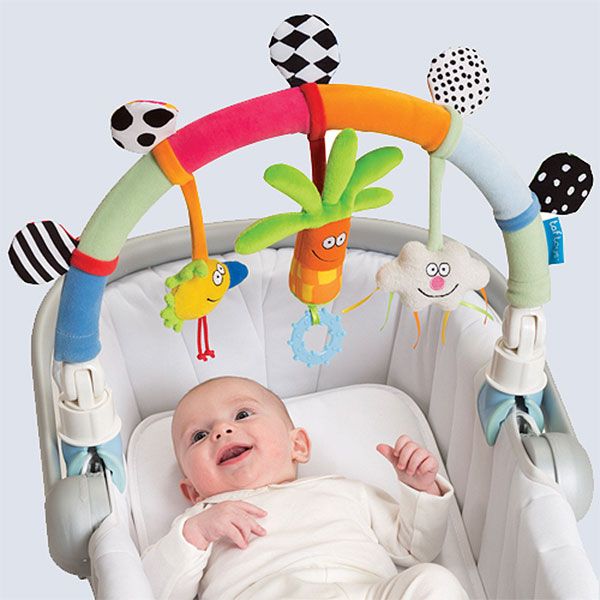 - Aрка за количка с цветни и атрактивни играчки, които засилват сетивата и моторното развитие на бебето.
