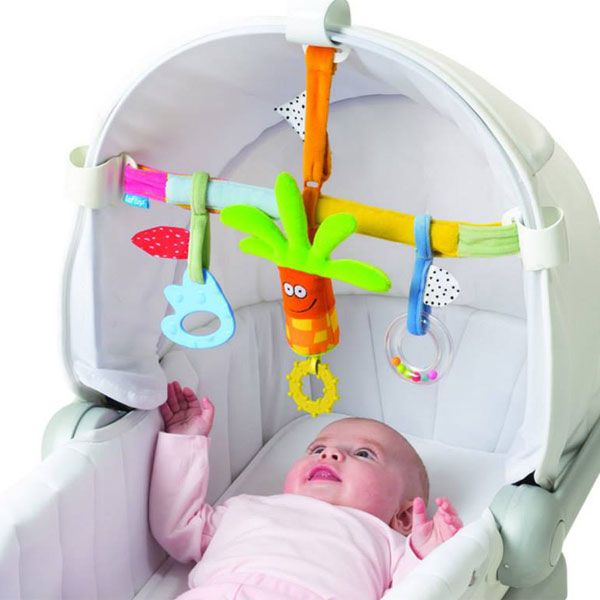 - Колоритните висящи и дрънкащи фигури стимулират сетивата и двигателните умения на малкото дете като привличат вниманието му.
