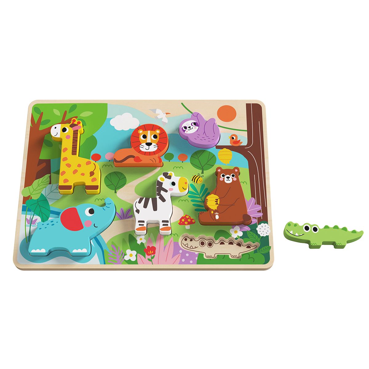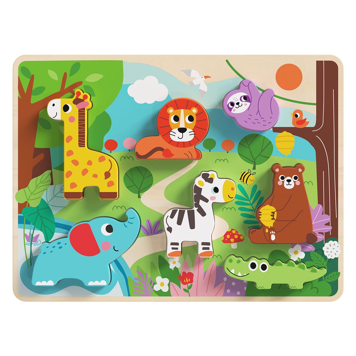 Дървеният пъзел с диви животни на Tooky toy ще привлече вниманието с пъстрите си цветове.