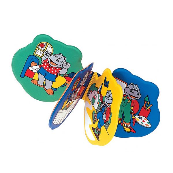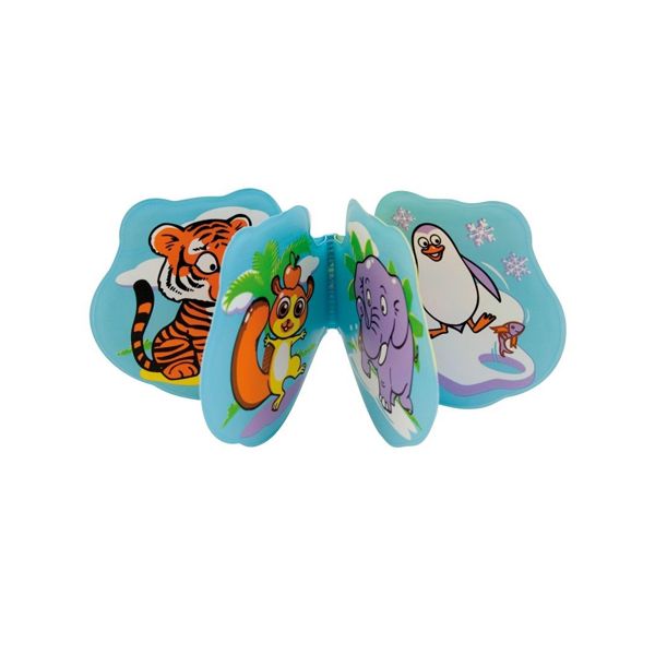 - Гумената книжка има интересна форма с ярки и цветни изображения на животни.