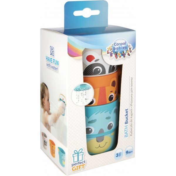 - Това са три кофички с дупчици, с които бебчо ще се опитва да прелива вода, ще развива моторните си способности и причинно-следствени връзки.