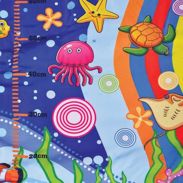 - Върху килимчето за игра има скала за измерване на развитието на детето - до 70 см.