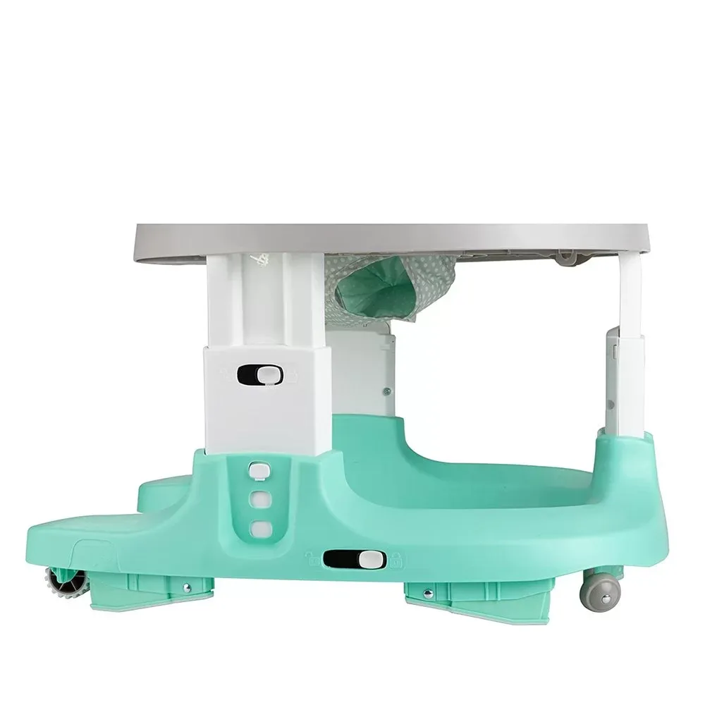 Вестибуларният апарат се задйества активно благодарение на въртящата се на 360 градуса седалка и бънджи функцията. Това също е провокация за лесно и правилно прохождане.
