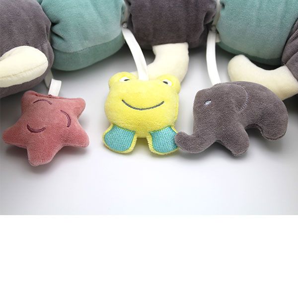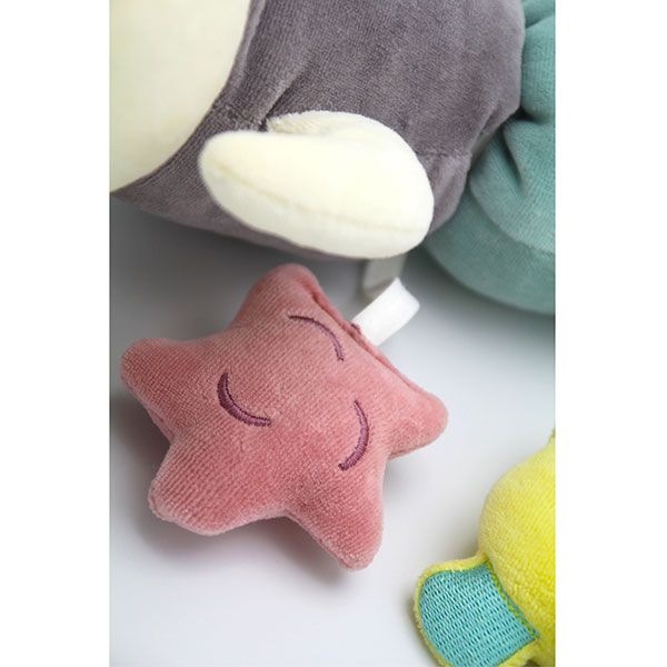 - Играчката е снабдена с няколко допълнителни висящи шумолящи играчки , които са идеални за приучаването на детето да хваща и да различава звуци и цветове, което от своя страна развива и когнитивните му умения.
