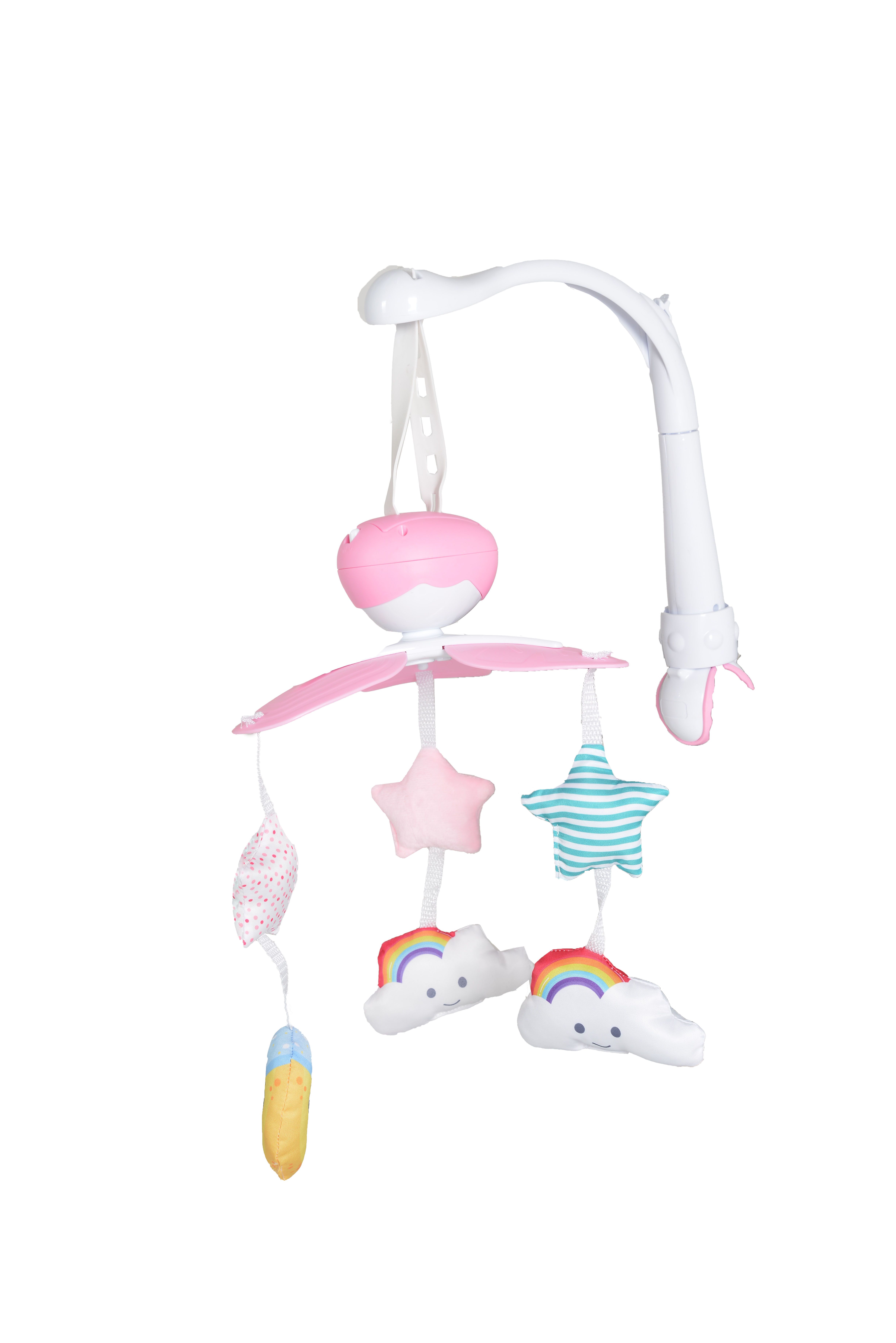 - Музикална въртележка за бебешко легло създадена от висококачествени материали - полиестер на играчките и напълно безопасна пластмаса на арката.