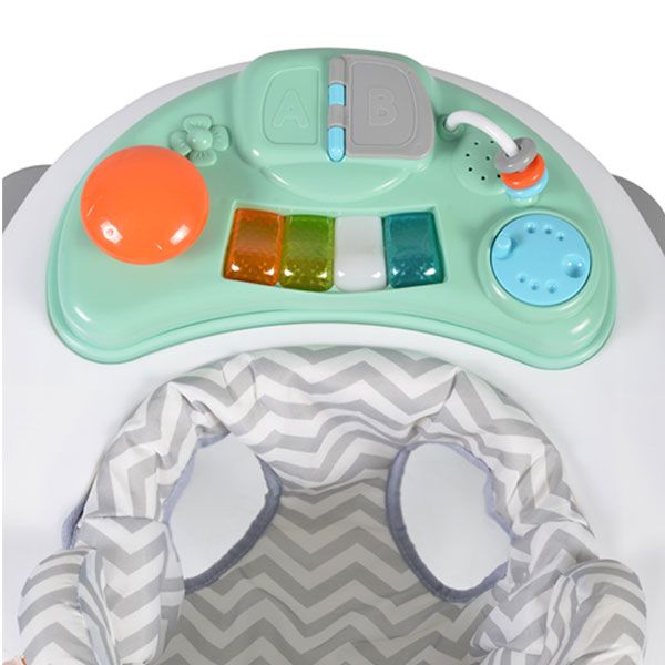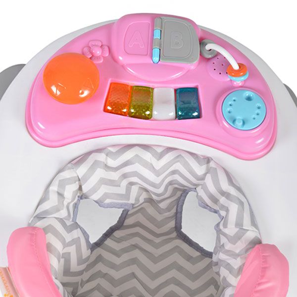 Проходилката е подходяща за дeца над 6 месеца. - Проходилката предлага истинско забавление на най-малките. Оригиналното музикално табло с играчки и приятна музика, ще забавлява и привлича вниманието на Вашето съкровище. В същото време, висококачествената изработка гарантира комфорт и сигурност за мъника.