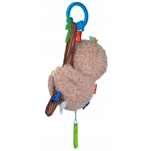 - Камбанката, скрита в ленивеца, ще развесели с приятен звук всеки път, когато детето разклати играчката, а мекото листо- гризалка, прикрепено към животното, със сигурност ще бъде полезно при никнене на зъби.