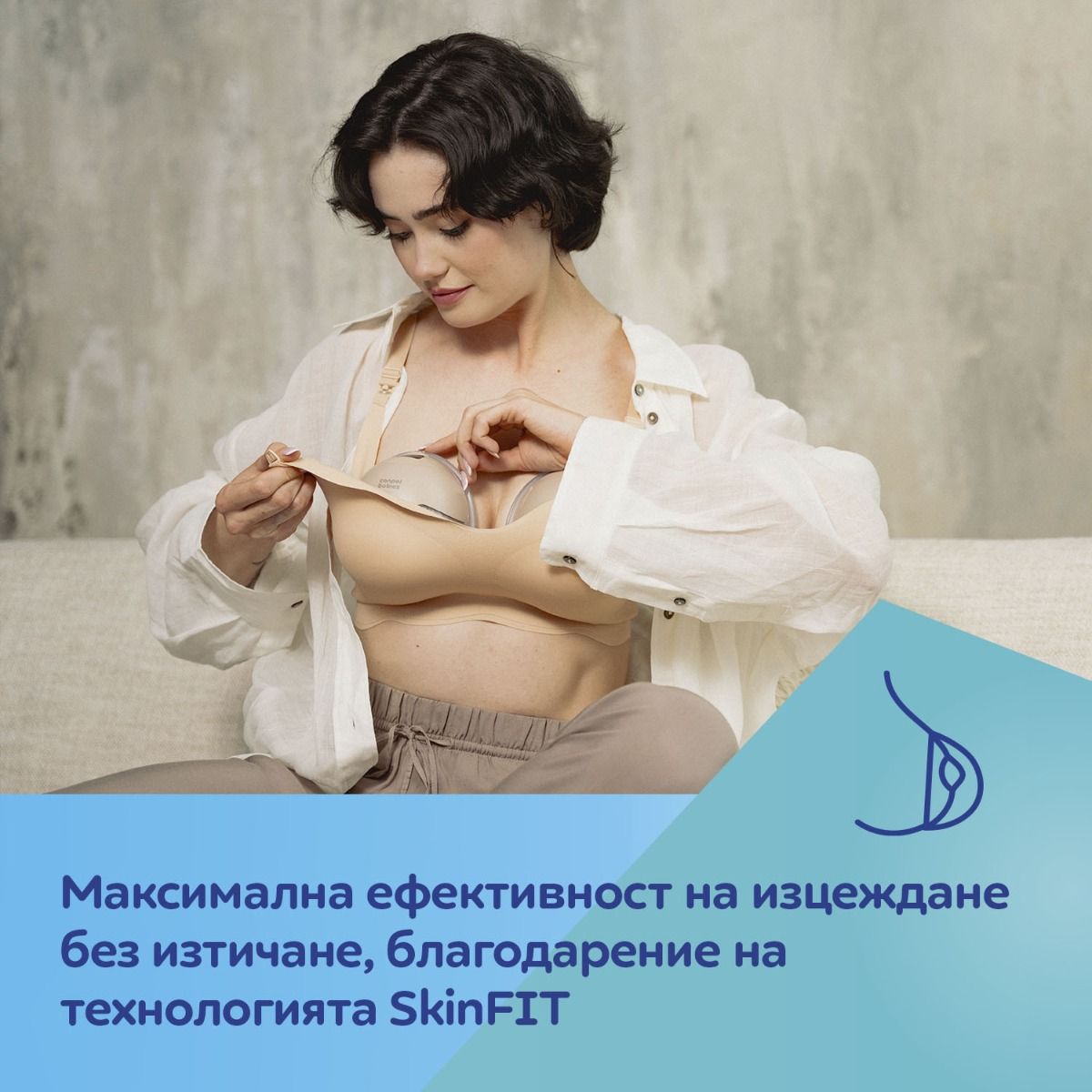 - Технологията SkinFIT осигурява плътно, гъвкаво и нежно прилягане към формата на гърдата, което позволява ефективно изцеждане без загуба на кърма.
