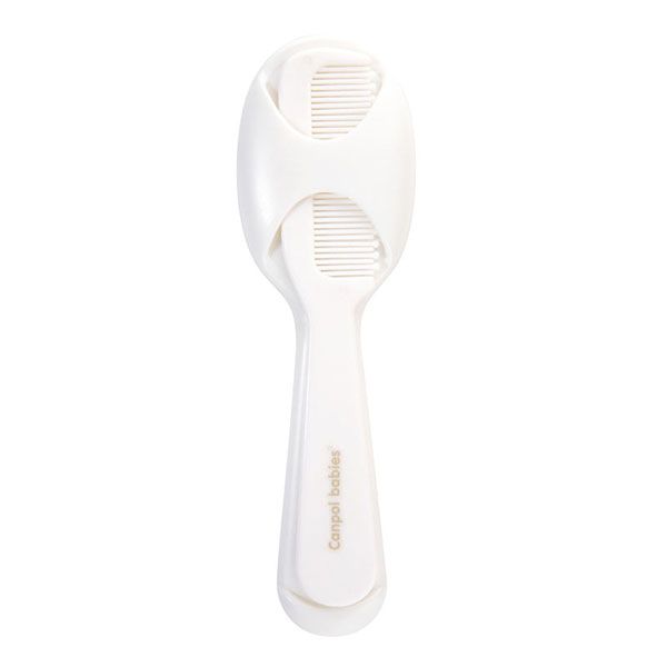 - Зъбите на гребена са заоблени, така че да не дразнят чувствителната бебешка кожа, докато синтетичните влакна на четката гарантират безопасна и приятна грижа за меката бебешка коса.