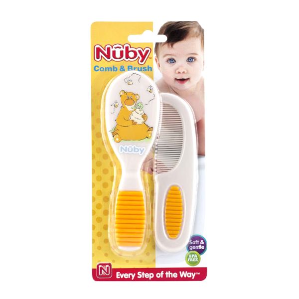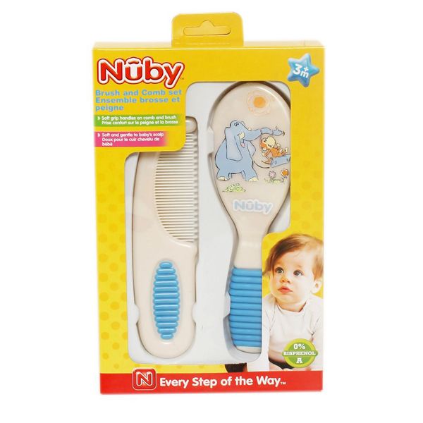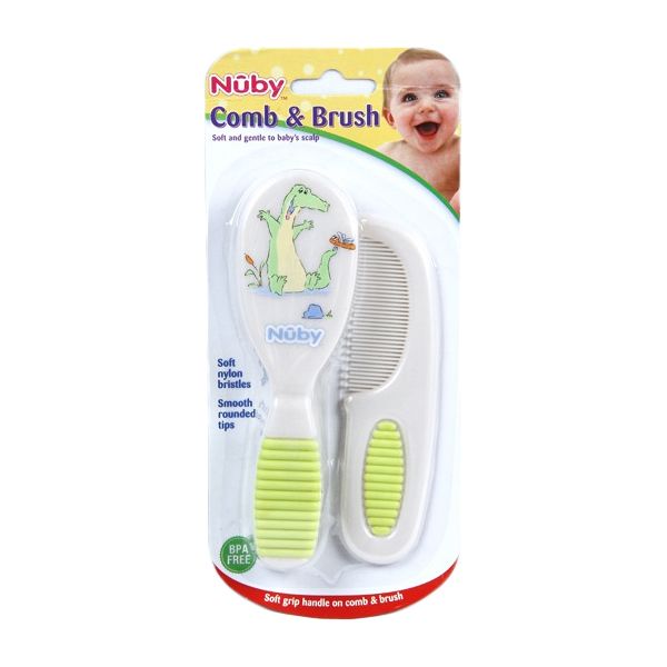 - Гребена и четката на Nuby са специално проектирани за лесно разресване. Меките найлонови влакна са нежни към бебешкия скалп.