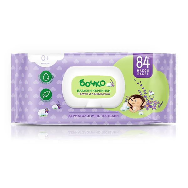 Почистващи мокри кърпички Бочко Памук и Лавандула