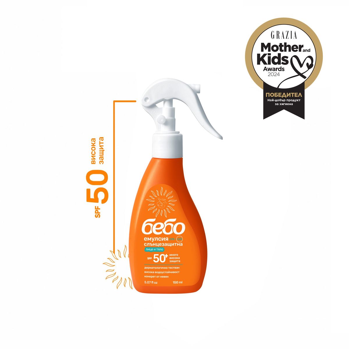 Слъцезащитна емулсия спрей SPF 50+ 150мл - Бебо