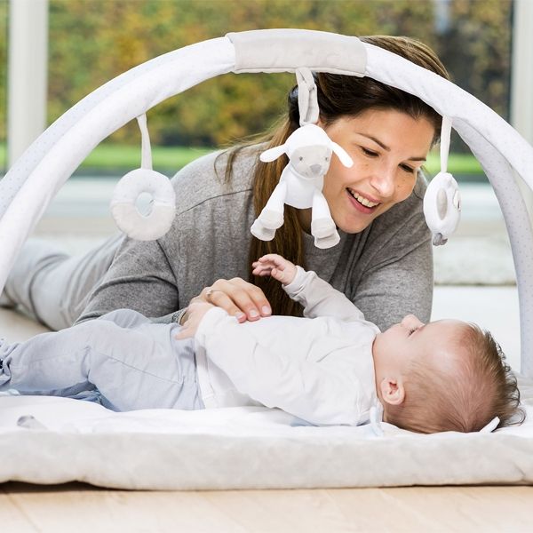 - Килимчето е част от момчешката колекция Sam & Toby на белгийската компания Nattou - това са синьо кученце и бяла овчица.