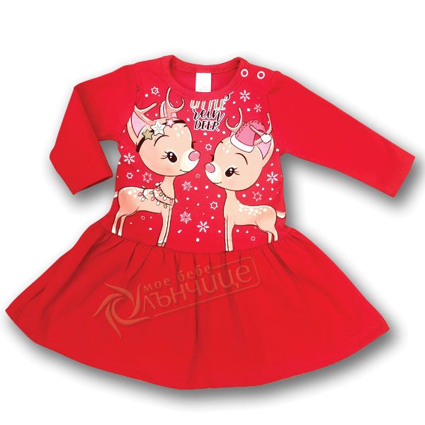 - Роклята е с дълъг ръкав и чаровна коледна щампа - Еленчета