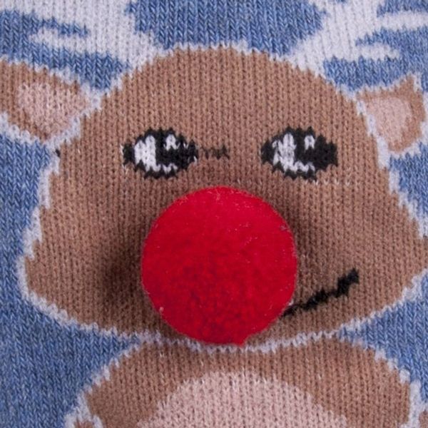 - Нослетата на Дядо Коледа и еленчето Рудолф, както и шапчицата на мечето, са с релефна плюшена топчица.