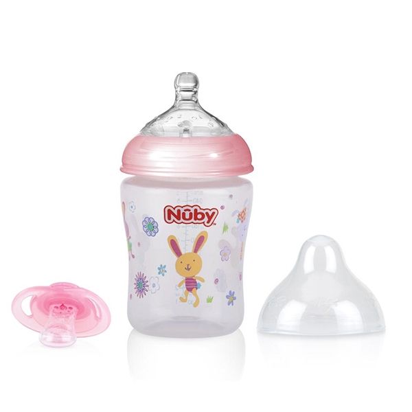 Комплект антиколик шише Merry Animals 270 мл + анатомична залъгалка 0м.+ - Nuby
