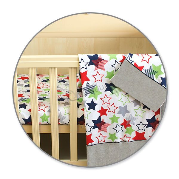 - Предлага се в комбинация от бял и сив цвят допълнен от свежа декорация на звезди.