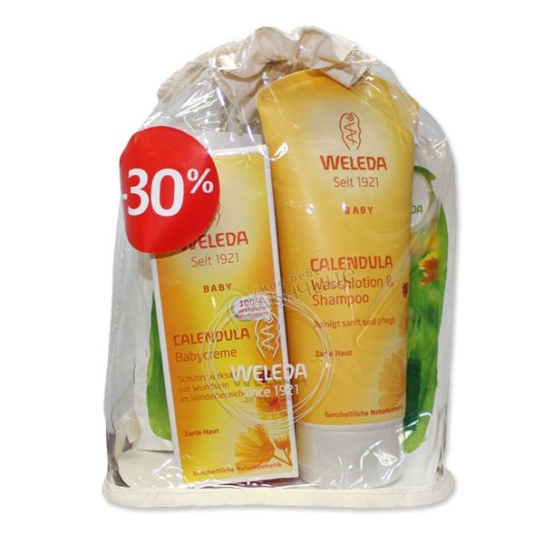 - Комплектът съдържа шампоан/душ гел за коса и тяло и крем за бебета с невен против подсичане, поднесени в красива опаковка.