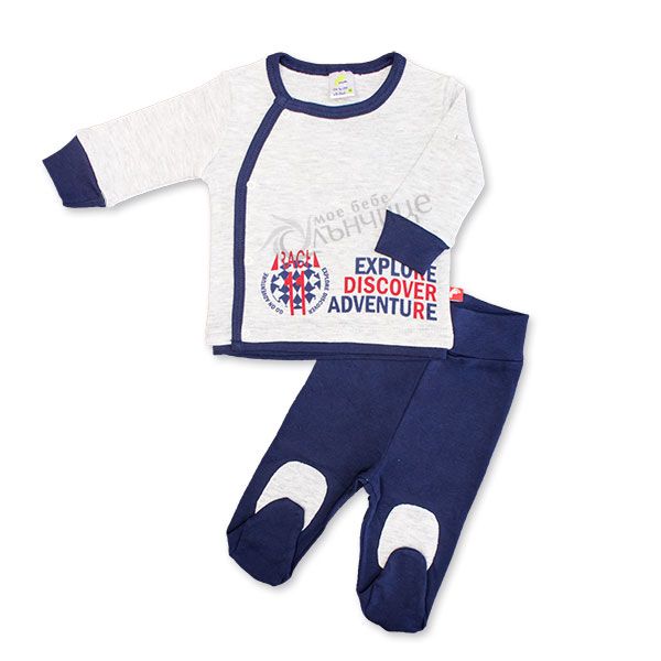 - Комплектът включва жилетка с дълъг ръкав и копчета тик-так в предната част за по-лесно преобличане, както и ританка с ластик в горната си част .