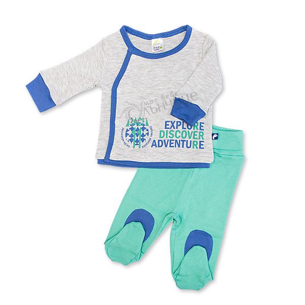 - Комплектът включва жилетка с дълъг ръкав и копчета тик-так в предната част за по-лесно преобличане, както и ританка с ластик в горната си част .