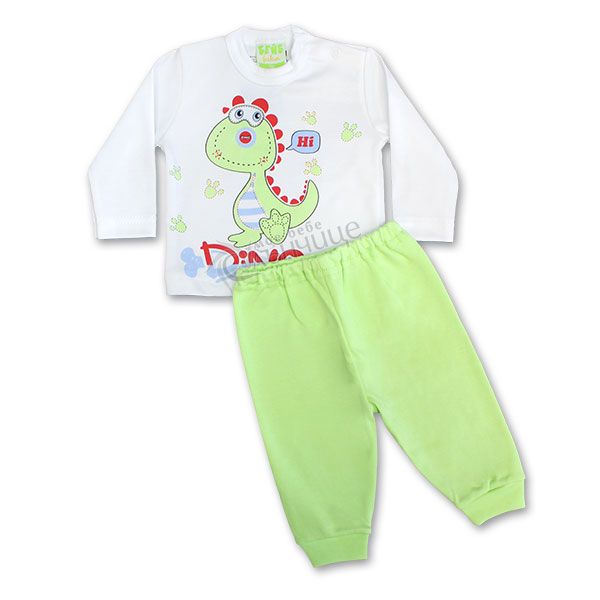 - Комплекта предлага блузка с копчета тик-так на едното рамо, за да осигури удобно преобличане. Панталонът е снабден с ластик в горната част.