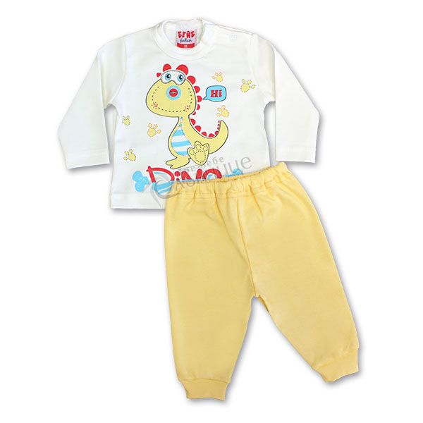 - Комплекта предлага блузка с копчета тик-так на едното рамо, за да осигури удобно преобличане. Панталонът е снабден с ластик в горната част.