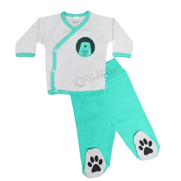 - Комплект от две части изработени от 100% фин и нежен за бебешката кожа памук (пениран памук- рипс).