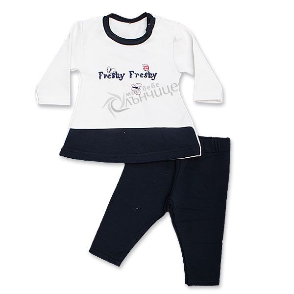 - Чаровен комплект блузка и клин изработен от плътна памучна материя.