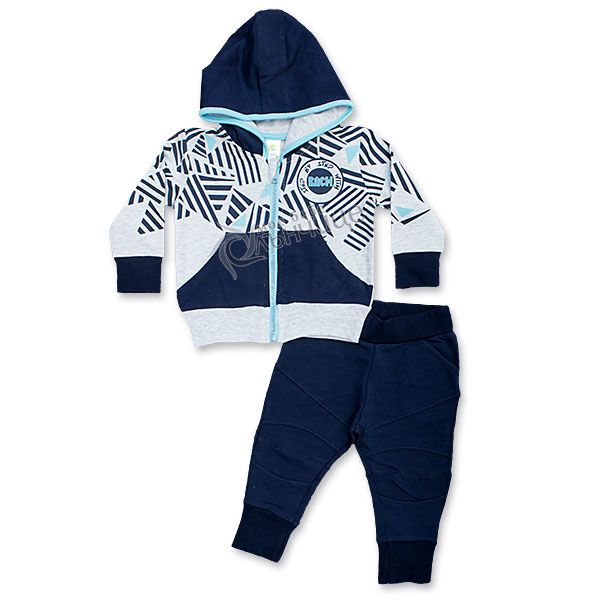 - Комплект за момче от две части, суичър с качулка и панталон.