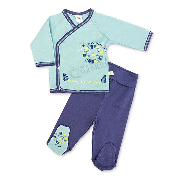 - Комплект от две части за новородено изработен от 100% памучно трико.