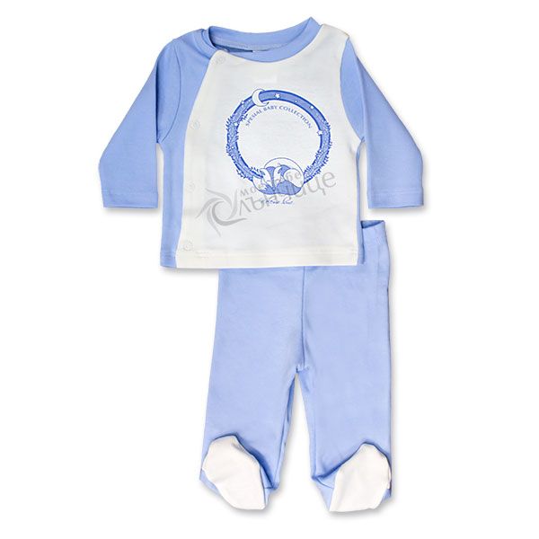 - Комплекта предлага жилетка тип „прегърни ме" с копчета тик-так в предната част, за да осигури удобно преобличане. Ританката е снабдена с ластик в горната част.
