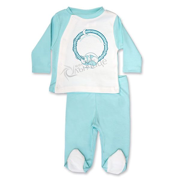 - Комплекта предлага жилетка тип „прегърни ме" с копчета тик-так в предната част, за да осигури удобно преобличане. Ританката е снабдена с ластик в горната част.