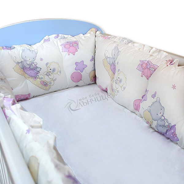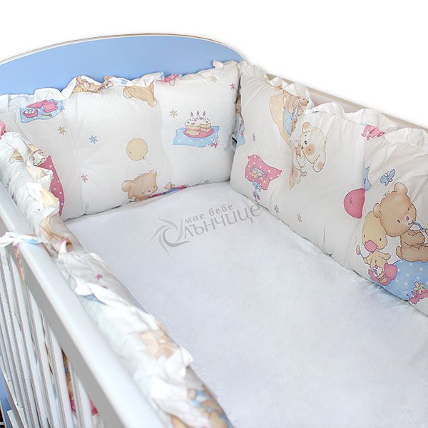 - Комплектът включва четири обиколника за бебешкото креватче изработени от 100% памук.