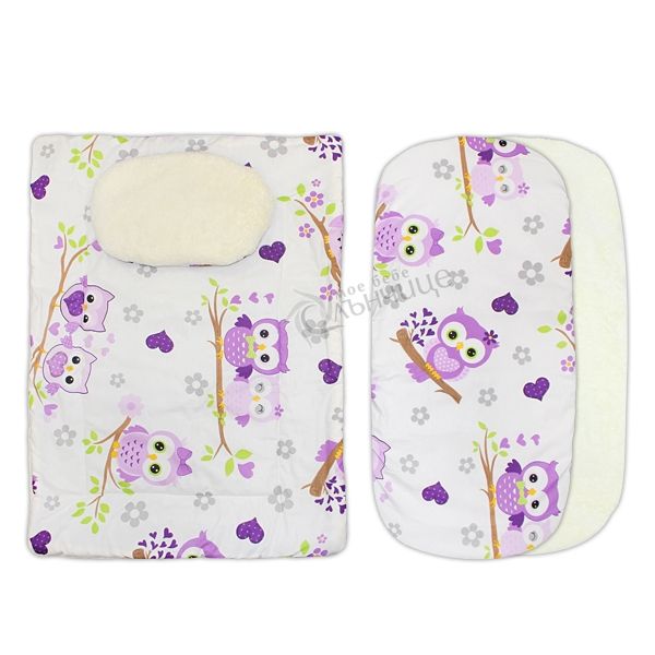 Комплект от четири части за количка зимен - Бухалчета Лилав
